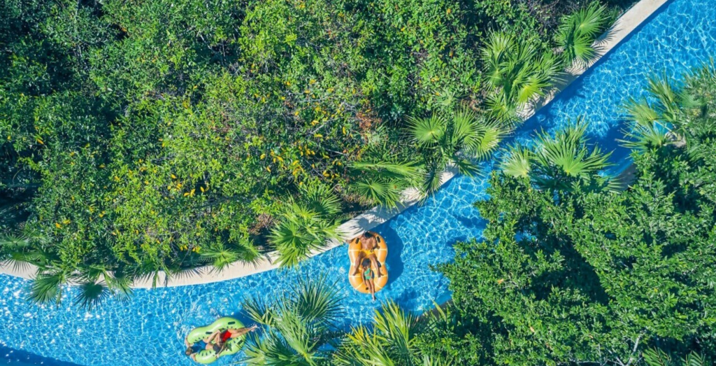 Para degustar los mejores platos a la vez que disfrutas de una divertida decoración sobre los océanos hecha con materiales reciclados, visita nuestro impresionante restaurante “Under the sea”, ¡no te lo puedes perder! Cuidamos del Planeta y también de ti, por eso te ofrecemos un hotel en primera línea del Caribe milenario con una piscina que reproduce las olas del mar pero sin peligros para los más pequeños y otra piscina en forma de río lento, para deslizarte mediante una suave corriente. ¡Y otras 5 áreas de piscina más para que encuentres la tuya! Además del spa, perfecto para relajarse, este hotel familiar cuenta con un fantástico parque acuático con toboganes, ideal para divertirse con toda la familia. ¿Sabías que el área de juegos del Star Camp está fabricada con más de 6,500 Kg de plástico reciclado que equivalen a 32,000 envases de 5 litros y sustituyen la madera de 65 árboles? No te pierdas la visita a Tulum, la ciudad maya, a la que se llega en menos de una hora.